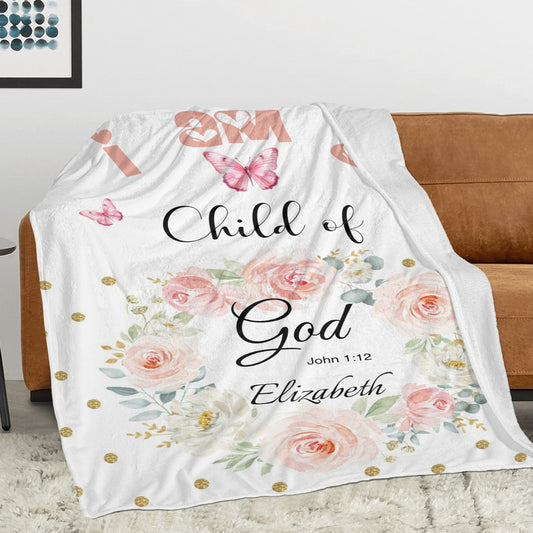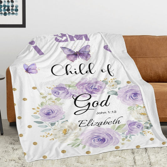 I Am A Child of God Flannel Blanket Custom Name Blanket Gift for Men Women