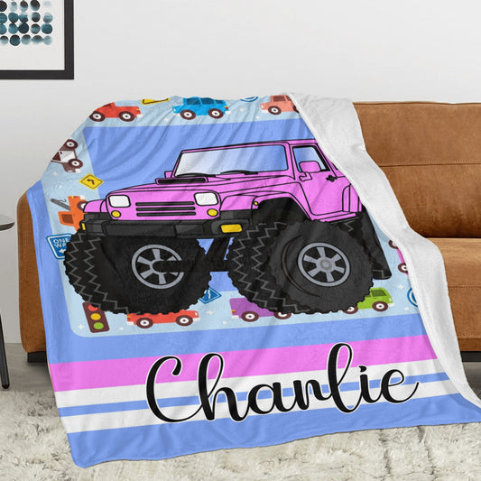 Cute Truck Flannel Blanket Custom Name Blanket Gift for Men Women