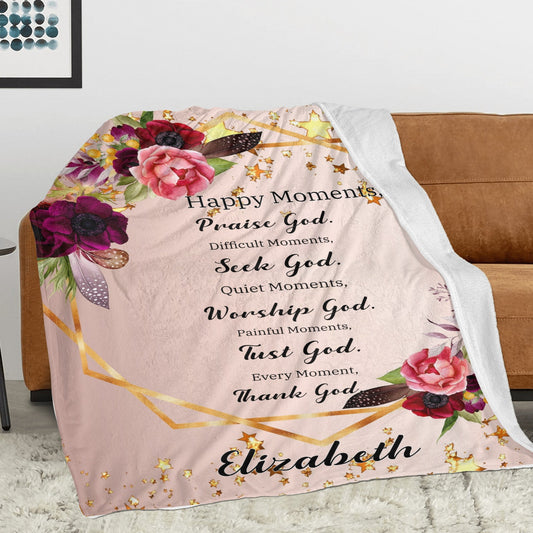 Happy Moments Flannel Blanket Custom Name Blanket Gift for Men Women