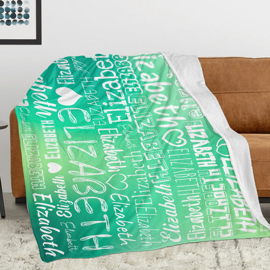 Green Gradient Flannel Blanket Name Blanket Personalized Blanket for Adult Kids Flannel Customize Throw Blanket Custom