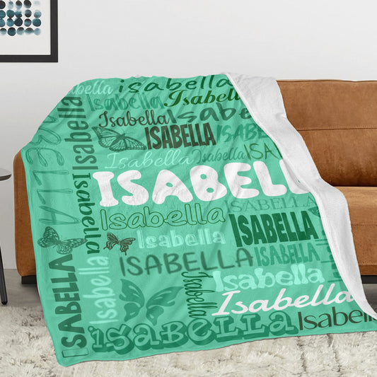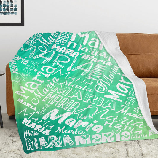 Green Cyan Flannel Blanket Name Blanket Personalized Blanket for Adult Kids Flannel Customize Throw Blanket Custom