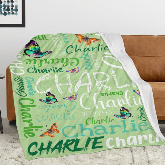 Green Flannel Blanket Name Blanket Personalized Blanket for Adult Kids Flannel Customize Throw Blanket Custom