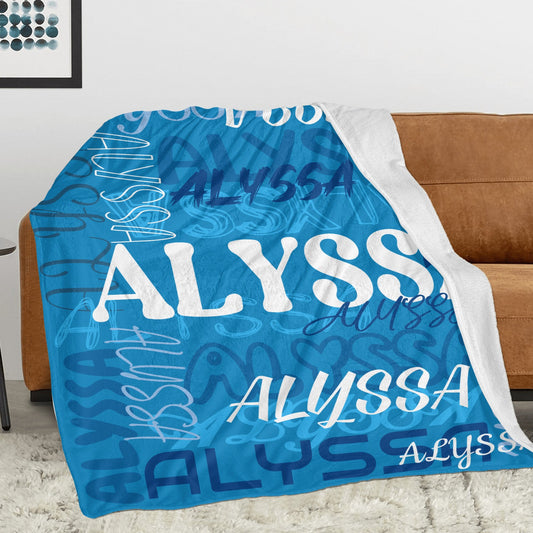 Light Blue Flannel Blanket Name Blanket Personalized Blanket for Adult Kids Flannel Customize Throw Blanket Custom