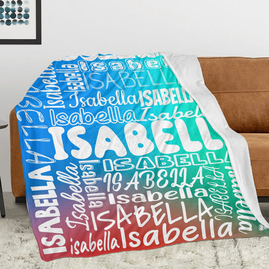 Three Color Gradient Flannel Blanket Name Blanket Personalized Blanket for Adult Kids Flannel Customize Throw Blanket Custom