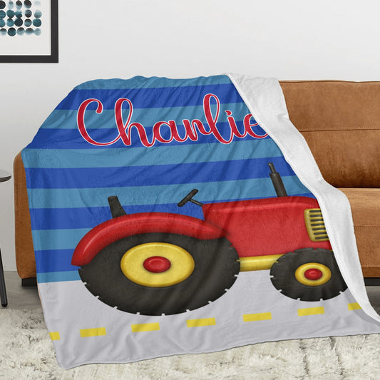 Red Truck Tractor Flannel Blanket Custom Name Blanket Gift for Men Women