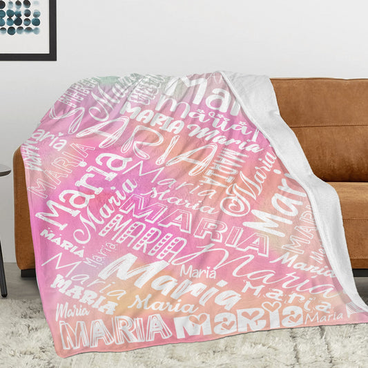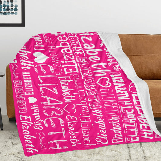 Rainbow Pink Flannel Blanket Name Blanket Personalized Blanket for Adult Kids Flannel Customize Throw Blanket Custom