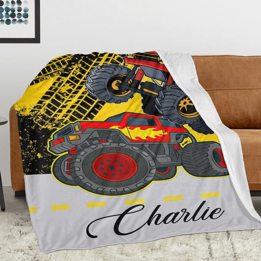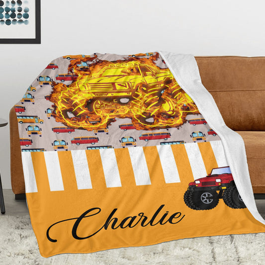 Truck Stripe Flannel Blanket Custom Name Blanket Gift for Men Women