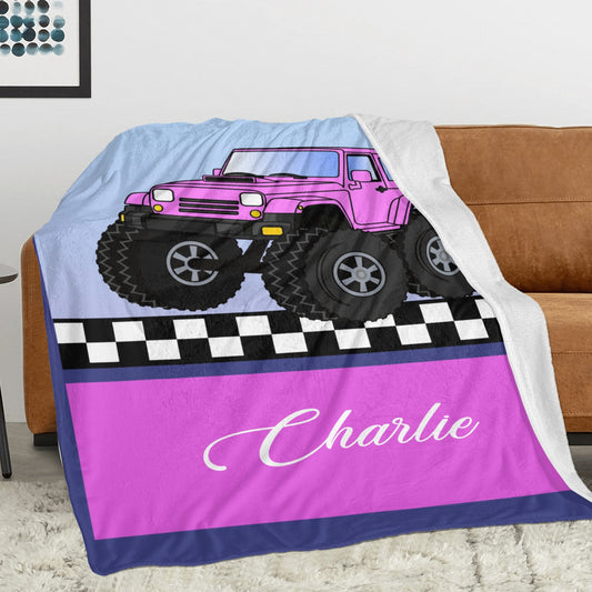 Truck Pink Flannel Blanket Custom Name Blanket Gift for Men Women