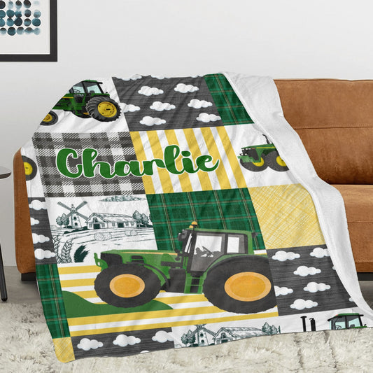 Tractor Patchwork Flannel Blanket Custom Name Blanket Gift for Men Women