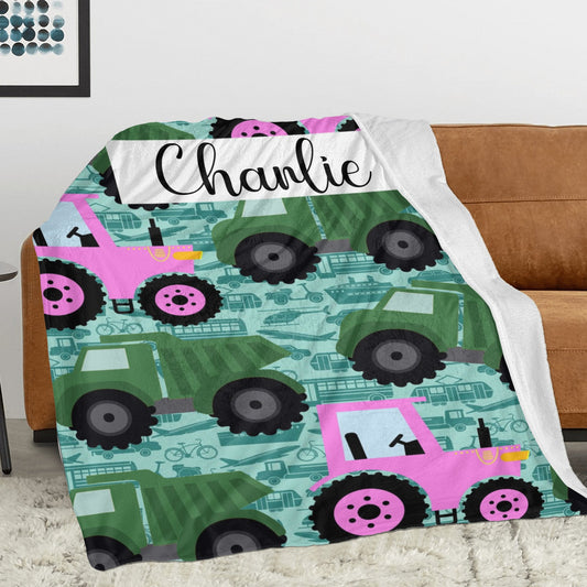 Truck Tractor Flannel Blanket Custom Name Blanket Gift for Men Women