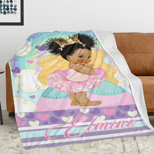 Rainbow Girl Flannel Blanket Custom Name Blanket Gift for Men Women
