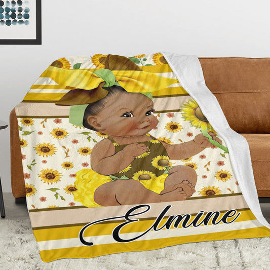 Sunflower Girl Flannel Blanket Custom Name Blanket Gift for Men Women