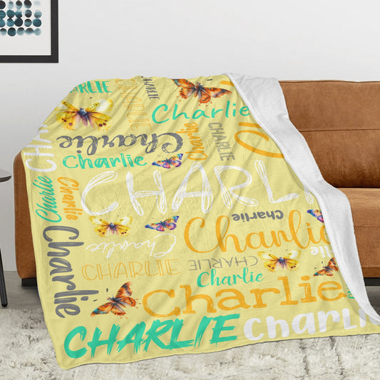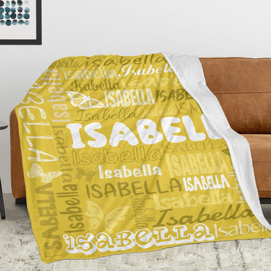 Yellow Flannel Blanket Custom Name Blanket Gift for Men Women
