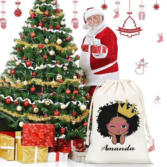 African Girl Christmas Gift Bag Custom Santa Gift Bags your Name