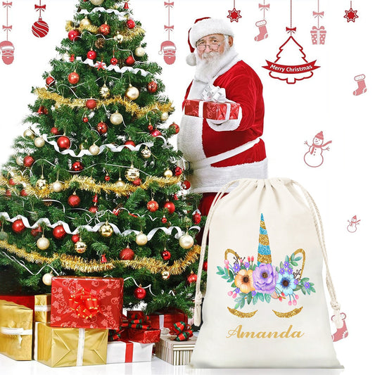 Unicorn Flowers Christmas Gift Bag Custom Santa Gift Bags your Name