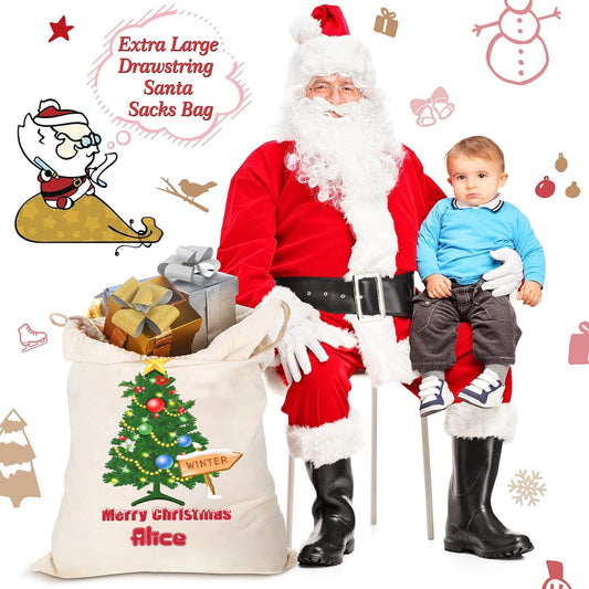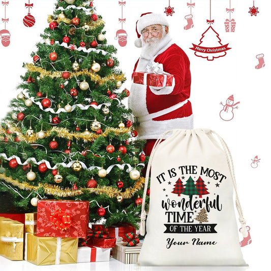 Tree Plaid Christmas Gift Bag Custom Santa Gift Bags your Name