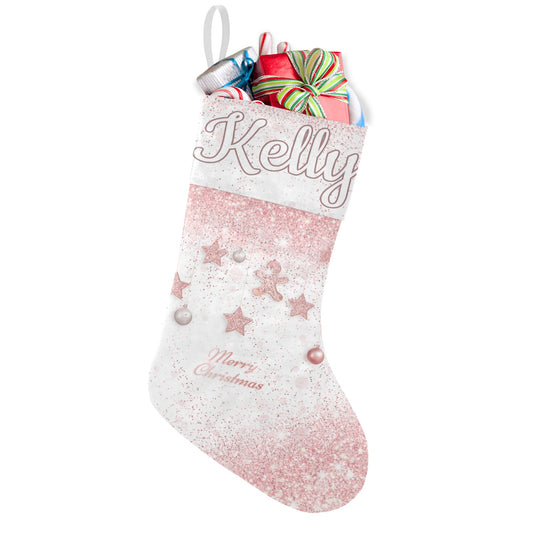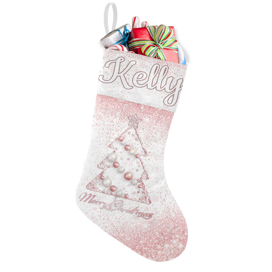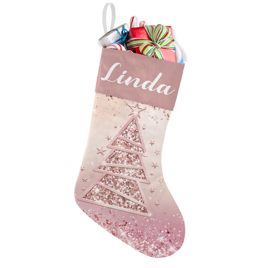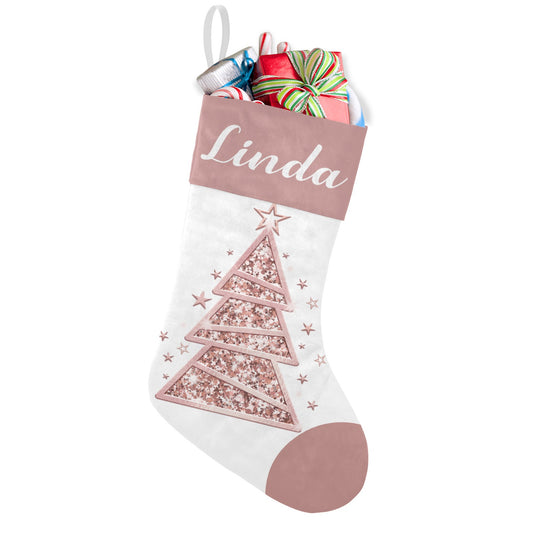 Christmas Tree Rose Gold Christmas Stocking Custom Name Christmas Socks Gift