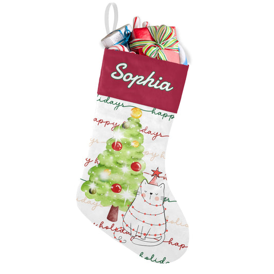 Christmas Cat Christmas Stocking Custom Name Christmas Socks Gift