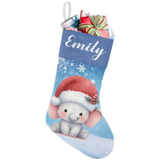 Cute Elephant Christmas Stocking Custom Name Christmas Socks Gift