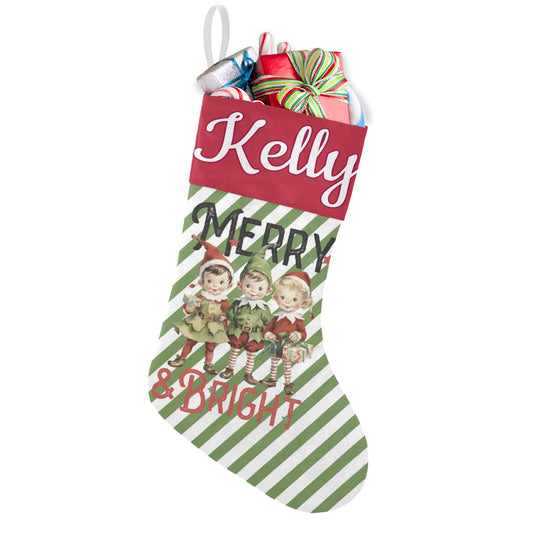 Children's Stripes Christmas Stocking Custom Name Santa Socks Gift