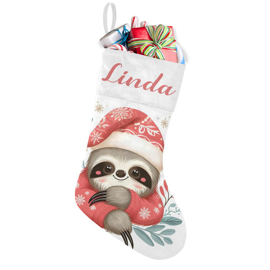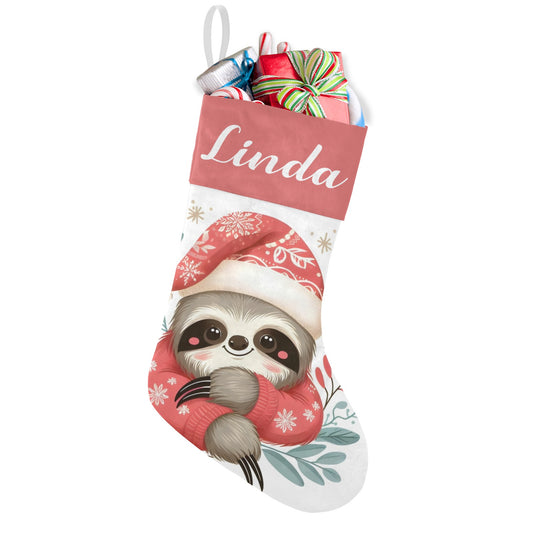 Christmas Sloth Christmas Stocking Custom Name Christmas Socks Gift
