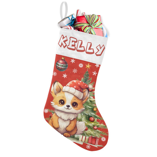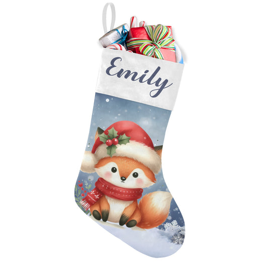 Cute Fox Christmas Stocking Custom Name Christmas Socks Gift