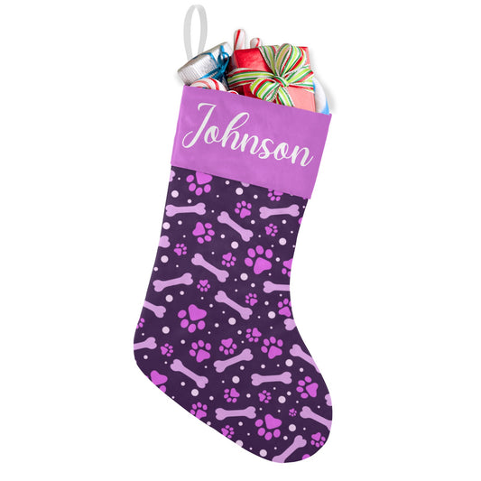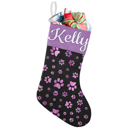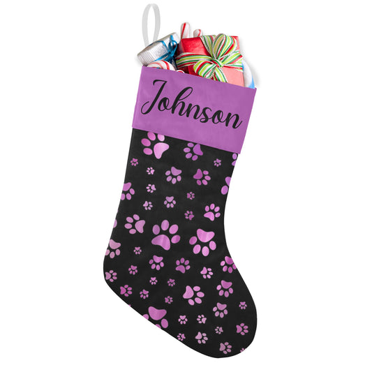 Dog Paw Purple Christmas Stocking Custom Name Christmas Socks Gift