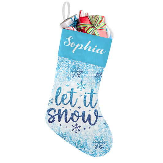 Let It Snow Blue Christmas Stocking Custom Name Christmas Socks Gift