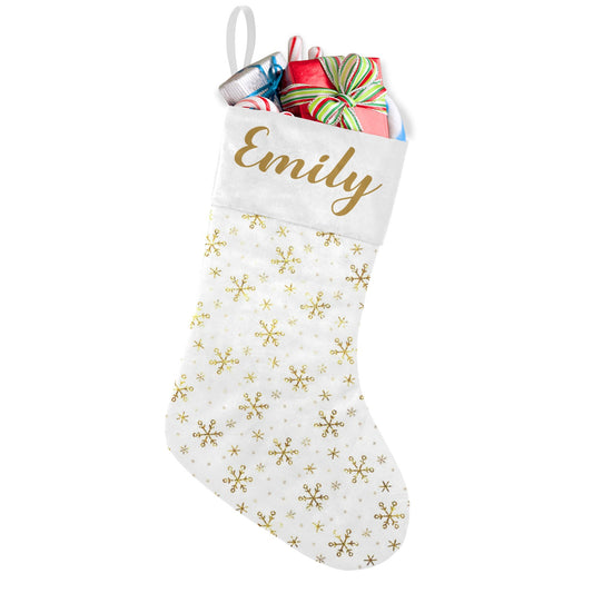 Gold Snowflakes Christmas Stocking Custom Name Christmas Socks Gift