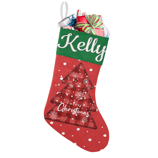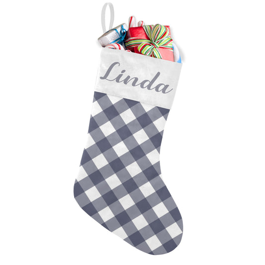 Grey Buffalo Plaid Christmas Stocking Custom Name Christmas Socks Gift