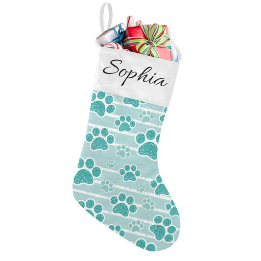 Dog Footprints Christmas Stocking Custom Name Santa Socks Gift