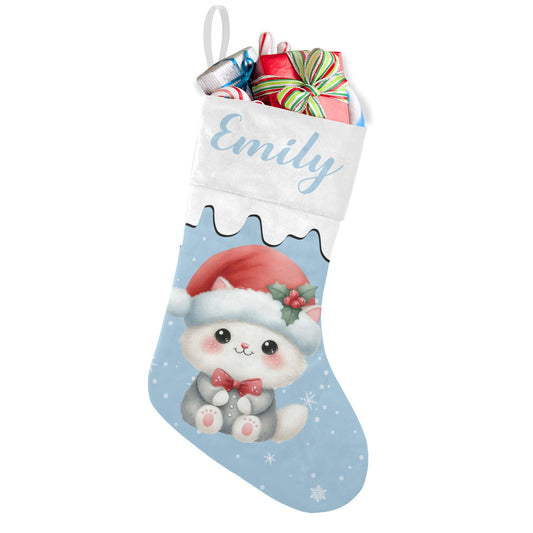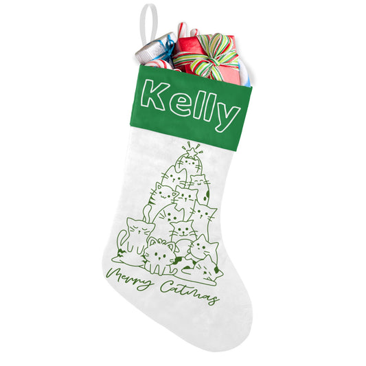 Green Cat Tree Christmas Stocking Custom Name Santa Socks Gift