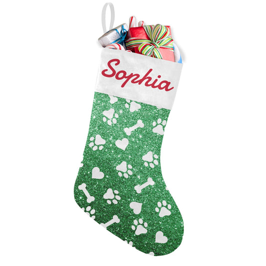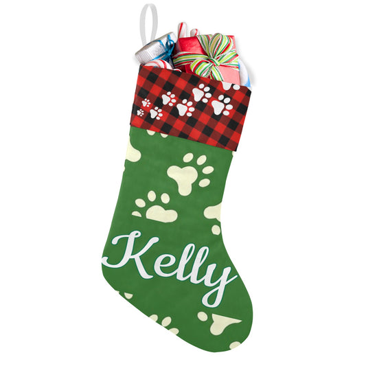 Dog Claw Green Christmas Stocking Custom Name Santa Socks Gift