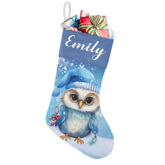 Owl Blue Christmas Stocking Custom Name Christmas Socks Gift
