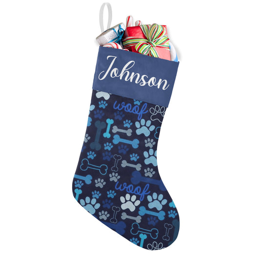 Dog Paw Navy Christmas Stocking Custom Name Christmas Socks Gift