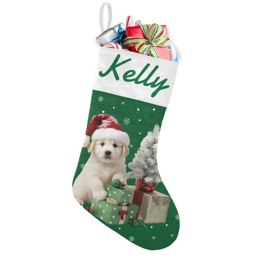 Green Dog Christmas Stocking Custom Name Santa Socks Gift