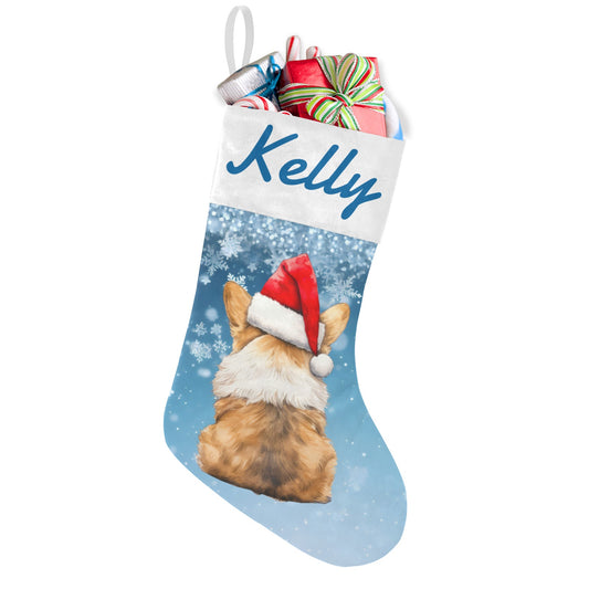 Dog Sky Blue Christmas Hat Christmas Stocking Custom Name Santa Socks Gift