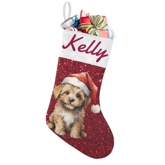 Dog Red Christmas Stocking Custom Name Santa Socks Gift