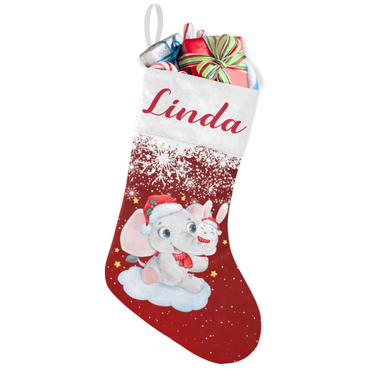 Red Christmas Elephant Christmas Stocking Custom Name Christmas Socks Gift