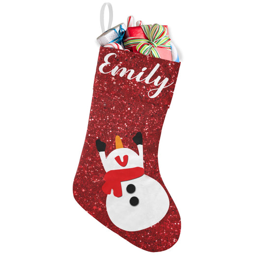 Red Glitter Snowman Christmas Stocking Custom Name Christmas Socks Gift