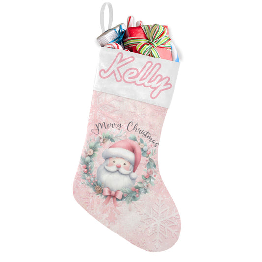 Pink Santa Claus Christmas Stocking Custom Name Santa Socks Gift