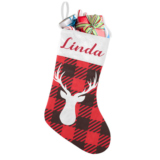 Red Buffalo Deer Christmas Stocking Custom Name Christmas Socks Gift
