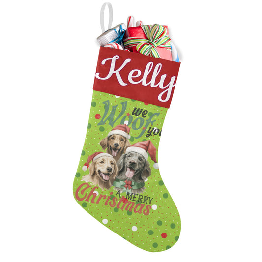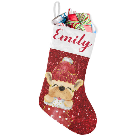 Puppy Dot Flower Christmas Stocking Custom Name Santa Socks Gift
