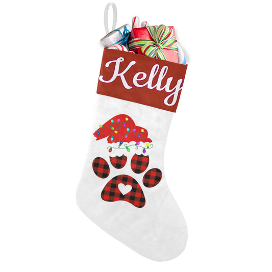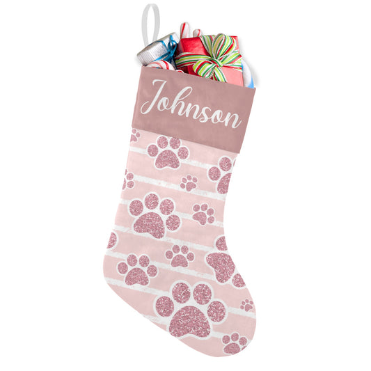 Pink Dog Paw Christmas Stocking Custom Name Christmas Socks Gift