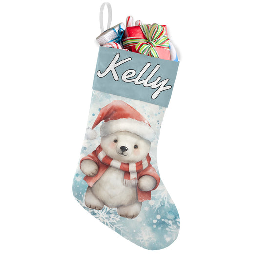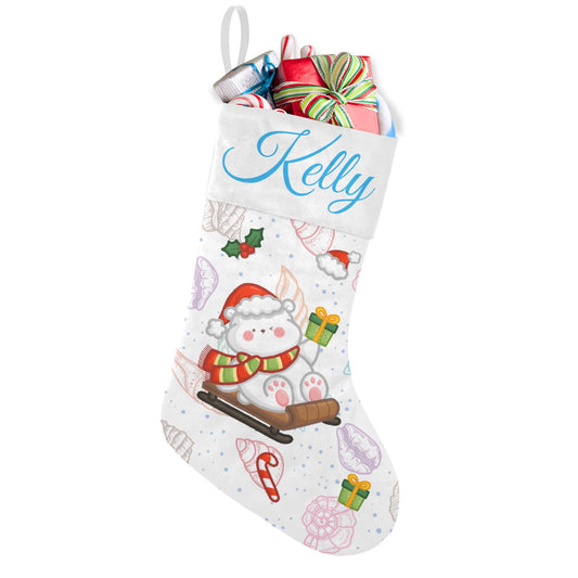 Polar Bear Christmas Stocking Custom Name Santa Socks Gift