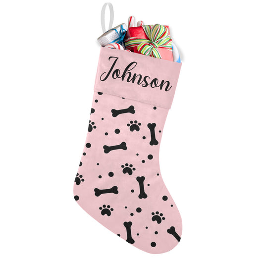 Paw bones Pink Christmas Stocking Custom Name Christmas Socks Gift