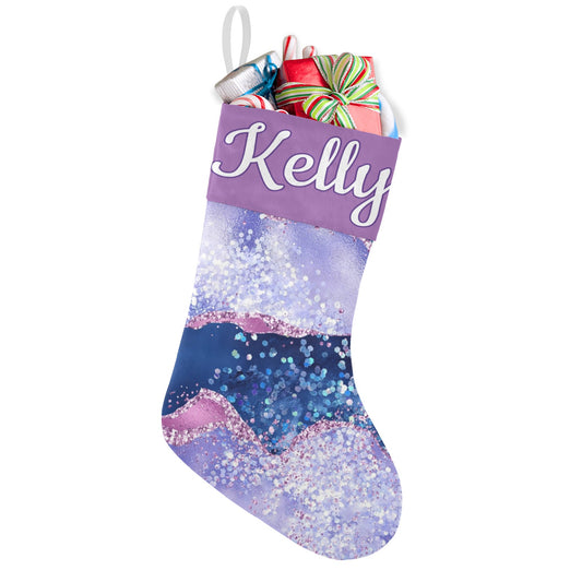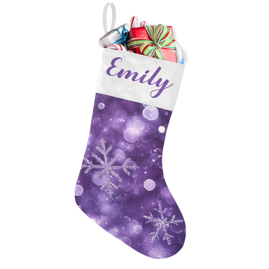 Purple Snowflakes Christmas Stocking Custom Name Christmas Socks Gift