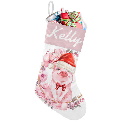 Pig Pink Christmas Stocking Custom Name Santa Socks Gift