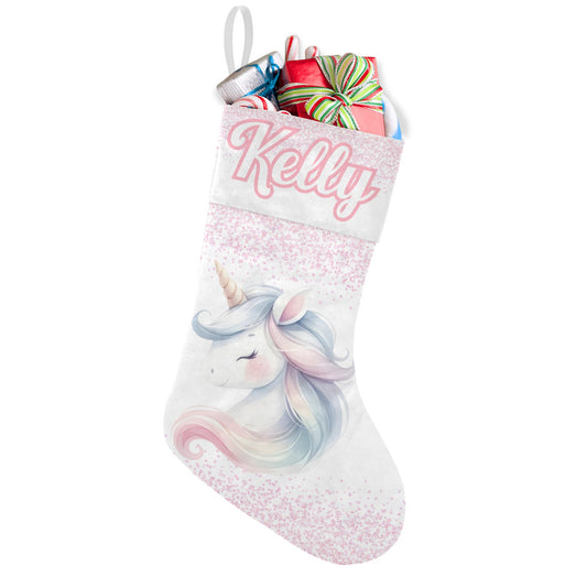 Pink Unicorn Christmas Stocking Custom Name Santa Socks Gift