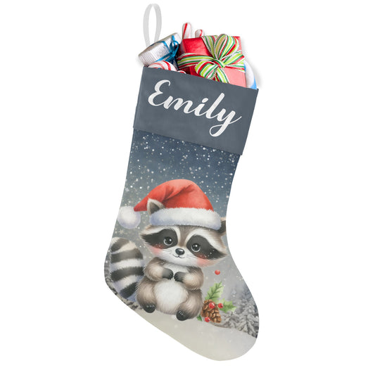 Raccoon Christmas Stocking Custom Name Christmas Socks Gift
